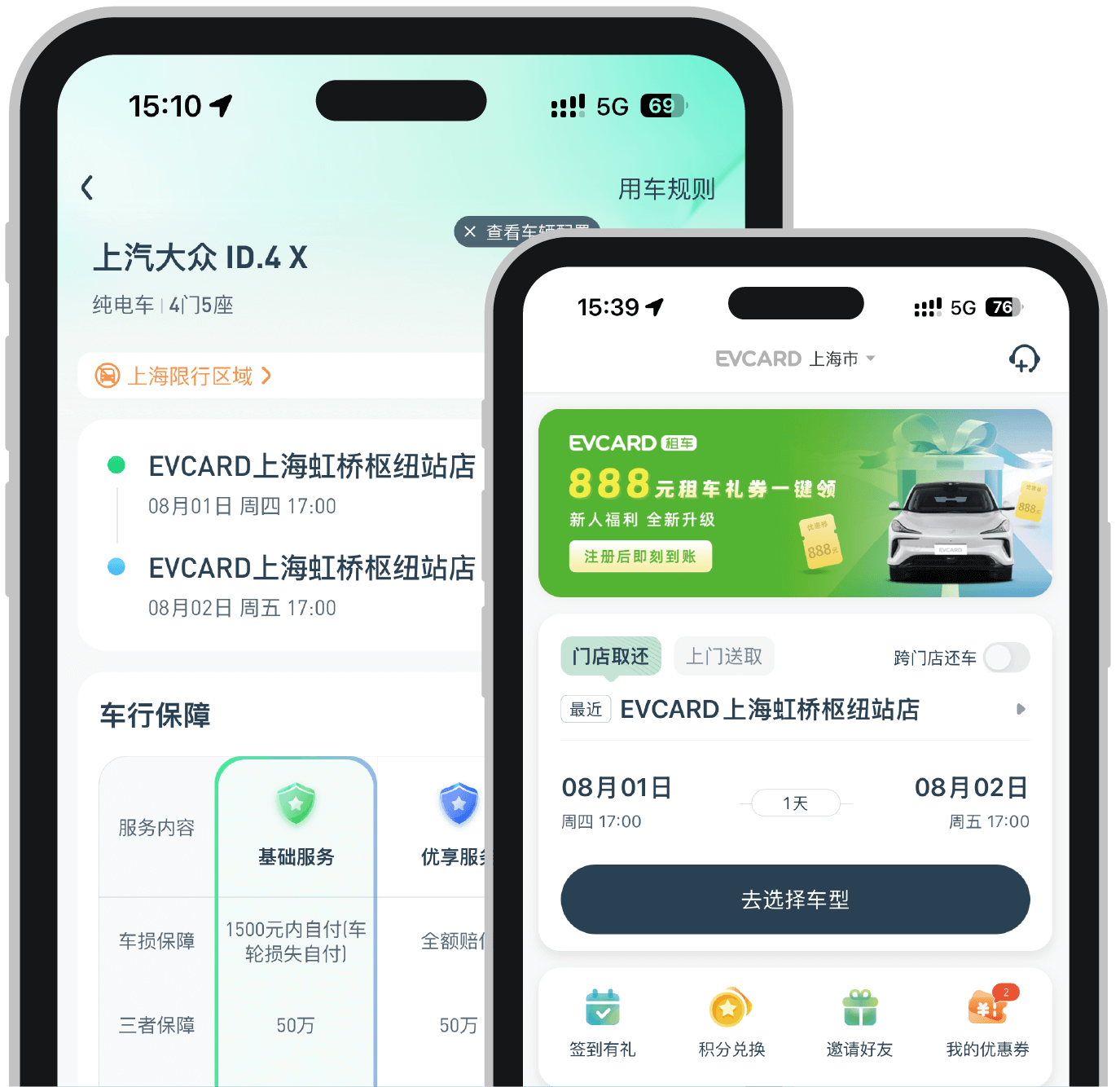 APP:可在手機應(yīng)用市場搜索下載“EVCARD租車”APP進行預定。